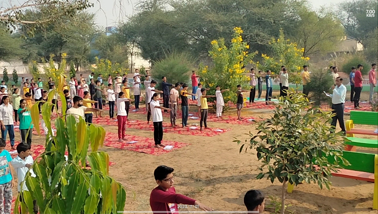 Morning yoga and meditation session focusing on mental health, discipline, and concentration for students.